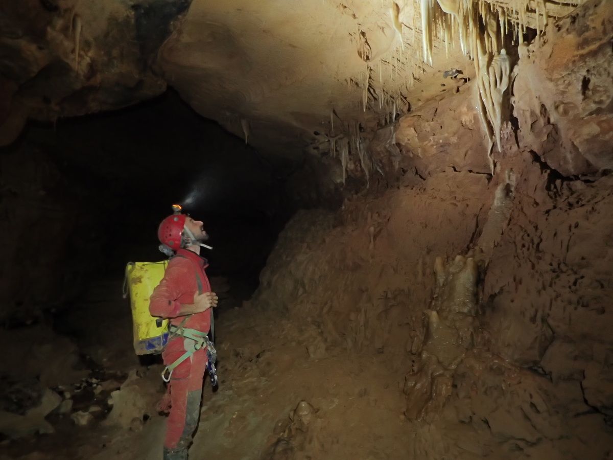 Après quelques minutes, Philippe teste un nouvel itinéraire pour éviter la trémie dans laquelle il faut habituellement suivre la ficelle. On passe par-dessus et c’est vrai que c’est plus simple. Mais on rate la sortie de l’itinéraire bis, nous obligeant à rebrousser chemin sur quelques mètres pour retrouver l’itinéraire habituel. On arrive au fakir vers 15h. Pause déjeuner (pizza maison miam !). On hésite à faire quelques m de plus dans des galeries supérieures apparemment très sympathiques mais, finalement on se met sur le chemin du retour directement. Retour sans encombre. Arrivée vers 18h30 en bas des puits. Le temps de déséquipper et on est tous dehors vers 19h15.